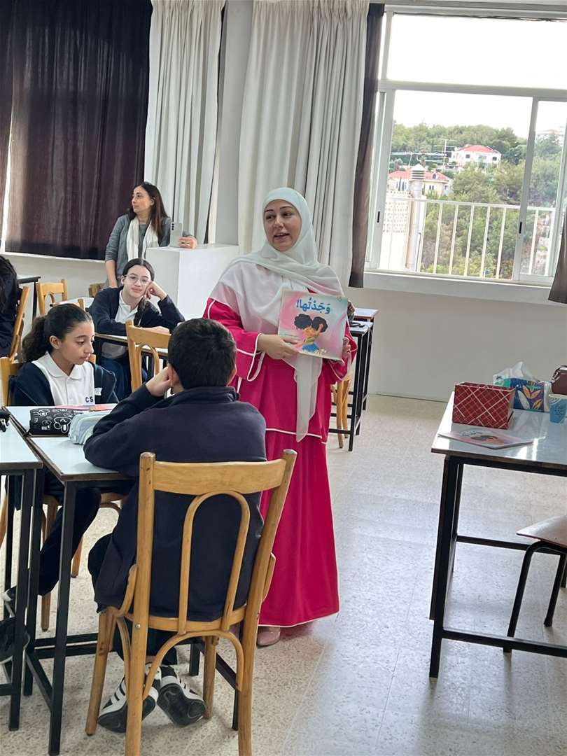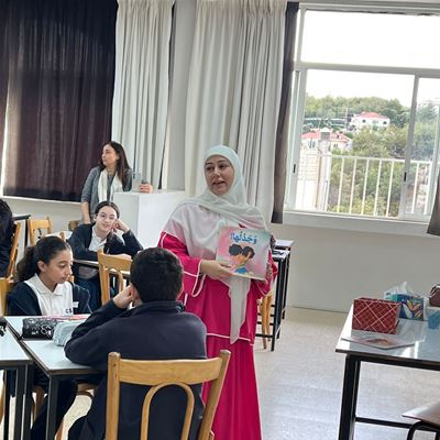 بعد خطّة عمل متكاملة انطلقنا فيها من قراءة كتاب " وجدتها " ، إلى تحليل القصّة والكشف عن رموزها ودلالاتها، فأعمال متنوّعة في التعبير الشفهيّ و التعبير الكتابيّ، وما واكب ذلك من نشاطات فنيّة جسّد فيها التلامذة رؤيتهم.. كان ختام هذا المشوار استضافة مؤلّفة الكتاب، الكاتبة فاطمة فنيش، التي شرّفت مدرستنا بلقاء غنيّ مع تلامذة السنة السادسة من التعليم الأساسيّ، قدّمت خلاله أنشطة تطبيقيّة لافتة أسهمت في تعميق فهمهم للنصّ وإطلاق طاقاتهم.