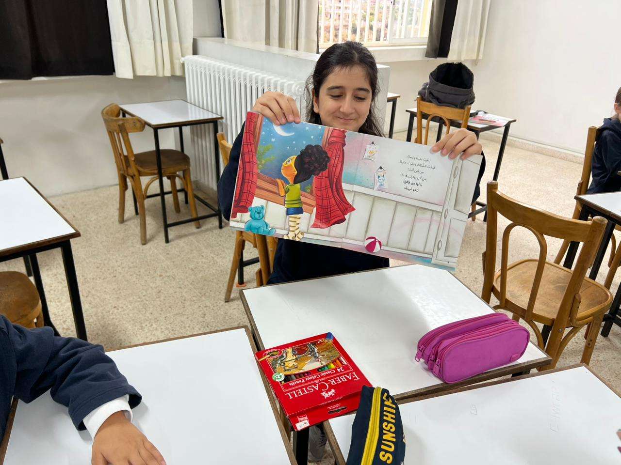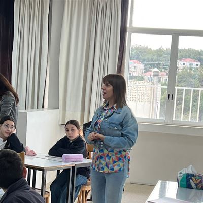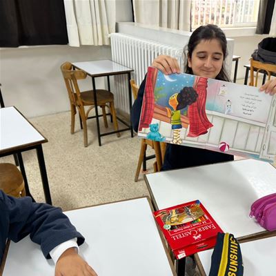بعد خطّة عمل متكاملة انطلقنا فيها من قراءة كتاب " وجدتها " ، إلى تحليل القصّة والكشف عن رموزها ودلالاتها، فأعمال متنوّعة في التعبير الشفهيّ و التعبير الكتابيّ، وما واكب ذلك من نشاطات فنيّة جسّد فيها التلامذة رؤيتهم.. كان ختام هذا المشوار استضافة مؤلّفة الكتاب، الكاتبة فاطمة فنيش، التي شرّفت مدرستنا بلقاء غنيّ مع تلامذة السنة السادسة من التعليم الأساسيّ، قدّمت خلاله أنشطة تطبيقيّة لافتة أسهمت في تعميق فهمهم للنصّ وإطلاق طاقاتهم.